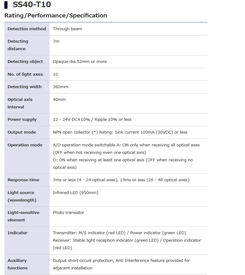 TAKEX竹中 SS40-T10 SS40 Series 超薄型光幕传感器 电话:0755-84670052 0755-83317701 手机/微信:13682357549 13246646513 QQ:672776553 564600083 1903656788 Email:672776553@qq.com 564600083@qq.com