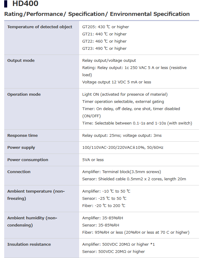 TAKEX竹中 HD400 HD Series CMD类型光纤