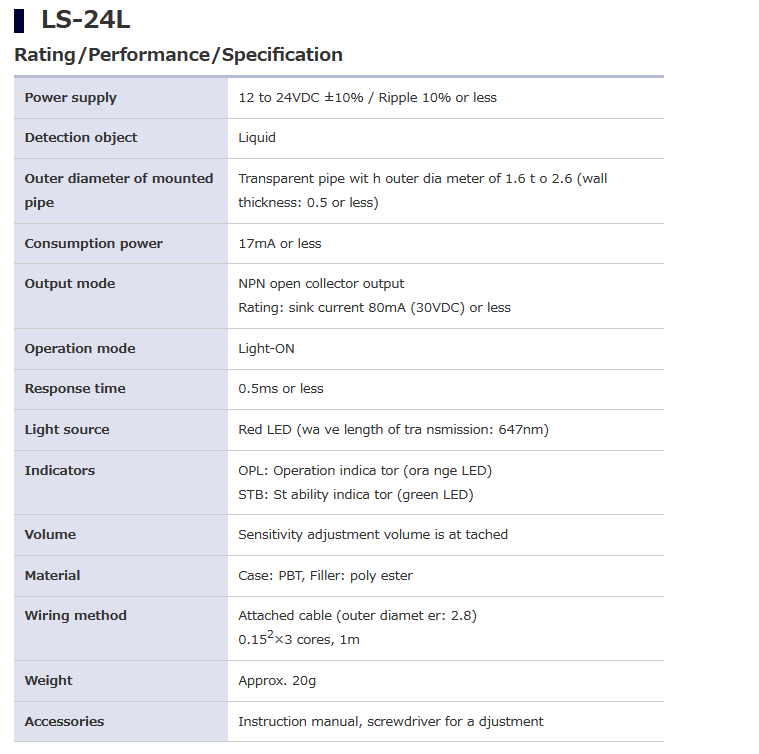 TAKEX竹中 LS-24L LS series 用于细直径管道的液位传感器 电话:0755-84670052 0755-83317701 手机/微信:13682357549 13246646513 QQ:672776553 564600083 1903656788 Email:672776553@qq.com 564600083@qq.com