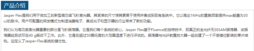Jasper Flex高功率飞秒光纤激光器Jasper Flex 电话:0755-84670052 0755-83317701 手机/微信:13682357549 13246646513 QQ:672776553 564600083 1903656788 Email:672776553@qq.com 564600083@qq.com