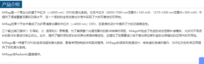 MIRage中红外激光器OPO 电话:0755-84670052 0755-83317701 手机/微信:13682357549 13246646513 QQ:672776553 564600083 1903656788 Email:672776553@qq.com 564600083@qq.com