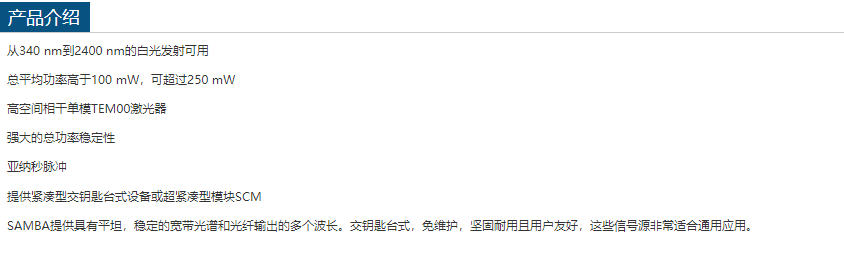 LEUKOS超连续谱激光器SAMBA-UV 电话:0755-84670052 0755-83317701 手机/微信:13682357549 13246646513  QQ:672776553 564600083 1903656788 Email:672776553@qq.com 564600083@qq.com