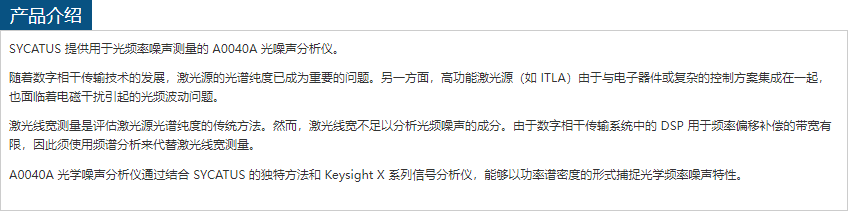 SYCATUS光噪声分析仪A0040A 电话:0755-84670052 0755-83317701 手机/微信:13682357549 13246646513 QQ:672776553 564600083 1903656788 Email:672776553@qq.com 564600083@qq.com
