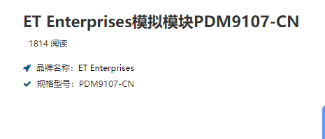 ET Enterprises模拟模块PDM9107-CN 电话:0755-84670052 0755-83317701 手机/微信:13682357549 13246646513 QQ:672776553 564600083 1903656788 Email:672776553@qq.com 564600083@qq.com