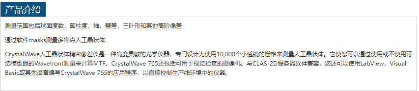 LUMETRICS精密像差仪CrystalWave 电话:0755-84670052 0755-83317701 手机/微信:13682357549 13246646513 QQ:672776553 564600083 1903656788 Email:672776553@qq.com 564600083@qq.com
