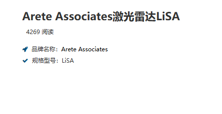 Arete Associates激光雷达LiSA 电话:0755-84670052 0755-83317701 手机/微信:13682357549 13246646513 QQ:672776553 564600083 1903656788 Email:672776553@qq.com 564600083@qq.com