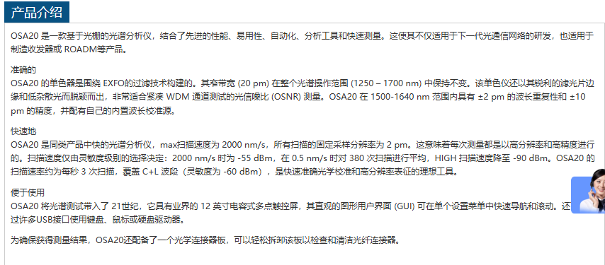 Yenista Optics光谱分析仪OSA20 电话:0755-84670052 0755-83317701 手机/微信:13682357549 13246646513 QQ:672776553 564600083 1903656788 Email:672776553@qq.com 564600083@qq.com