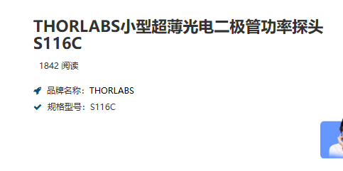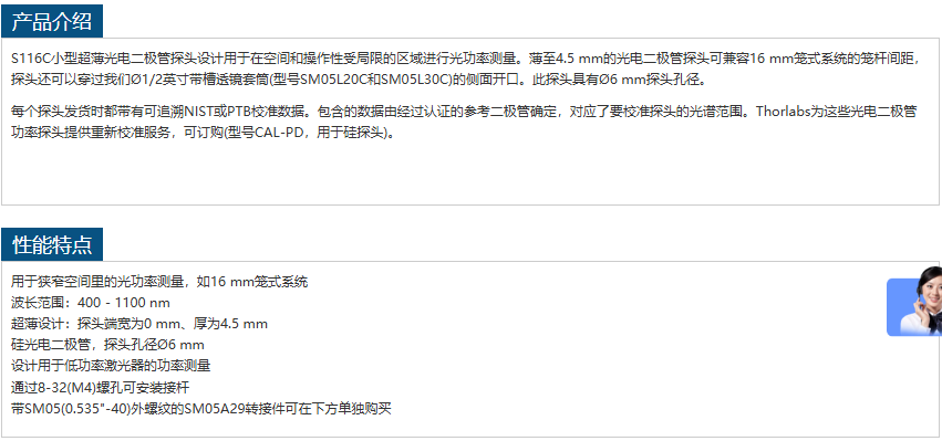 THORLABS小型超薄光电二极管功率探头S116C 电话:0755-84670052 0755-83317701 手机/微信:13682357549 13246646513 QQ:672776553 564600083 1903656788 Email:672776553@qq.com 564600083@qq.com