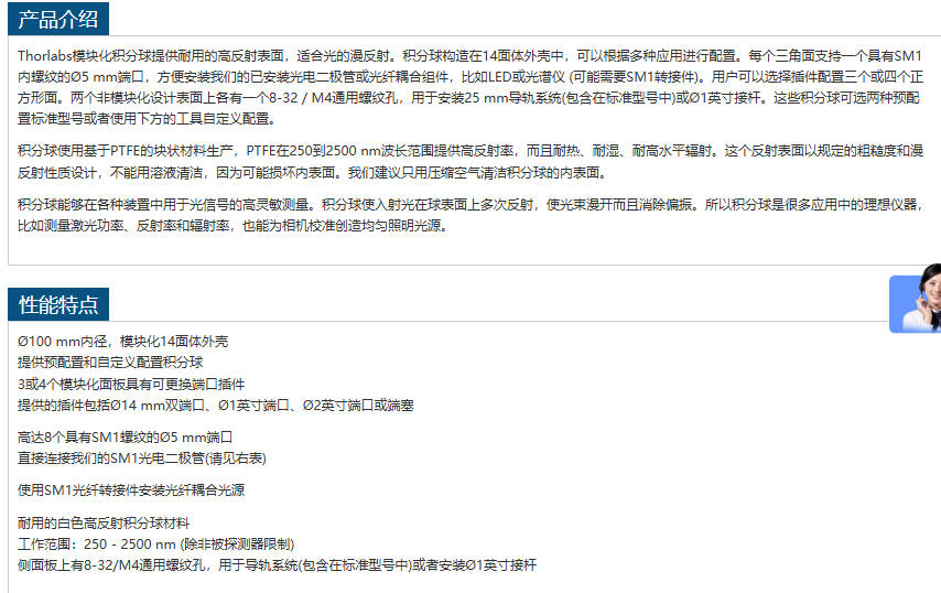 THORLABS预配置积分球4P3,4P4 电话:0755-84670052 0755-83317701 手机/微信:13682357549 13246646513 QQ:672776553 564600083 1903656788 Email:672776553@qq.com 564600083@qq.com