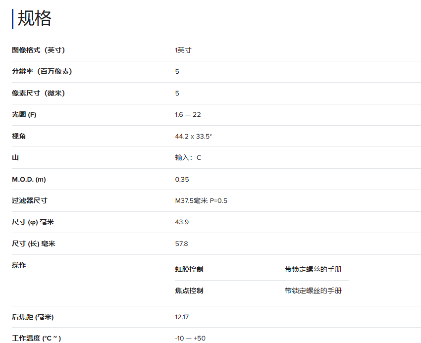 KenkoTokina肯高图丽 TC1616-5MP 机器视觉镜头