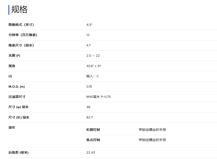 KenkoTokina肯高图丽 TC2520-12MP 机器视觉镜头
