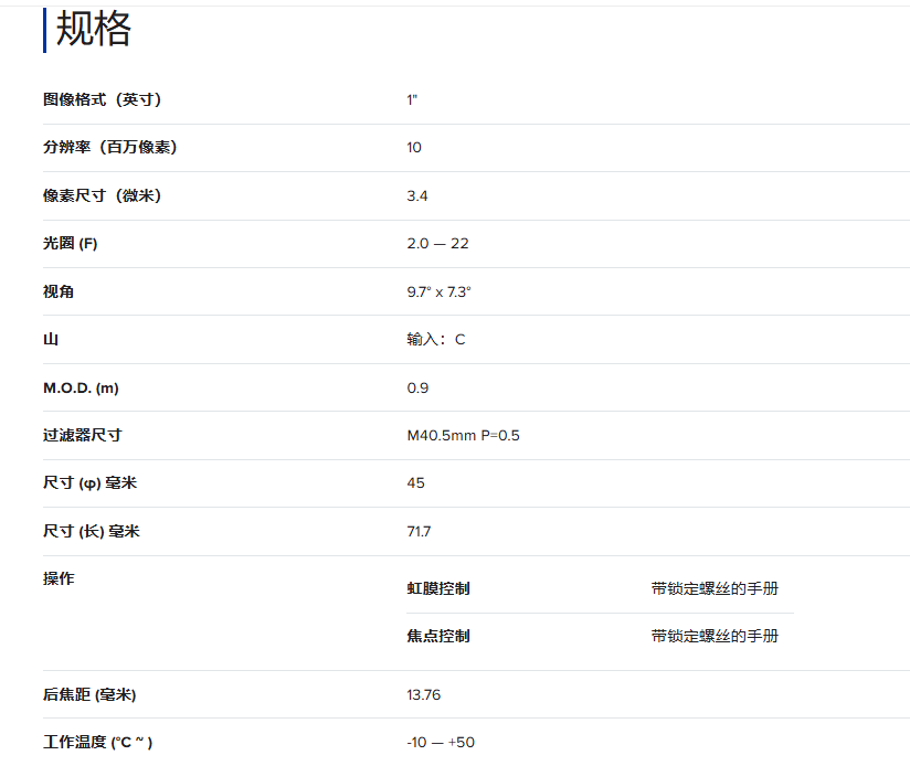 KenkoTokina肯高图丽 TC7520-10MP 机器视觉镜头