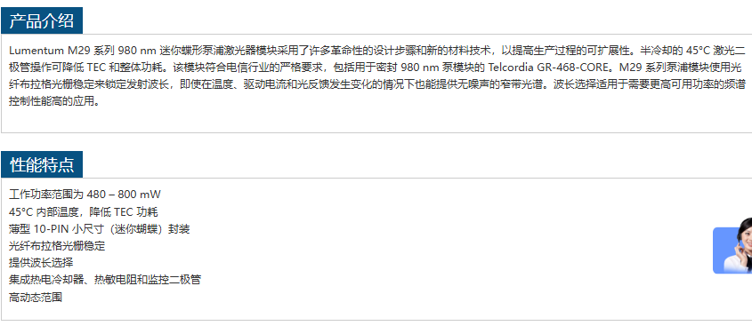 LUMENTUM泵模块M29 Series 电话:0755-84670052 0755-83317701 手机/微信:13682357549 13246646513 QQ:672776553 564600083 1903656788 Email:672776553@qq.com 564600083@qq.com