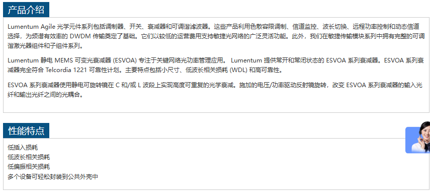 LUMENTUM静电 MEMS 可变光衰减器ESVOA Series 电话:0755-84670052 0755-83317701 手机/微信:13682357549 13246646513 QQ:672776553 564600083 1903656788 Email:672776553@qq.com 564600083@qq.com