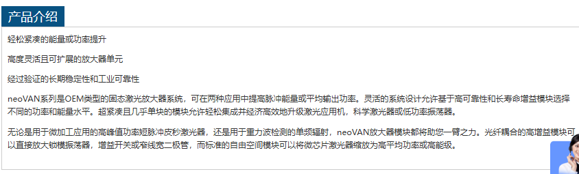 neoLASE激光器放大器neoVAN 电话:0755-84670052 0755-83317701 手机/微信:13682357549 13246646513 QQ:672776553 564600083 1903656788 Email:672776553@qq.com 564600083@qq.com