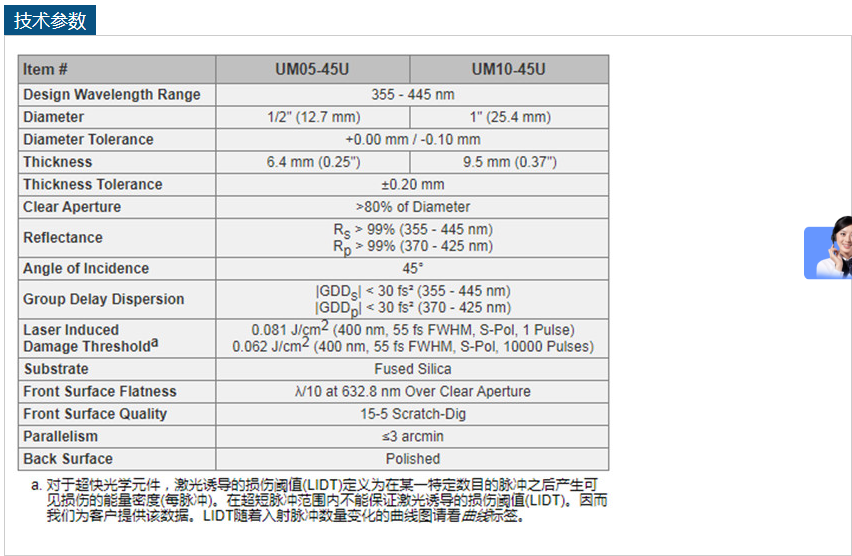 THORLABS低群延迟色散超快反射镜UM05-45U 电话:0755-84670052 0755-83317701 手机/微信:13682357549 13246646513 QQ:672776553 564600083 1903656788 Email:672776553@qq.com 564600083@qq.com