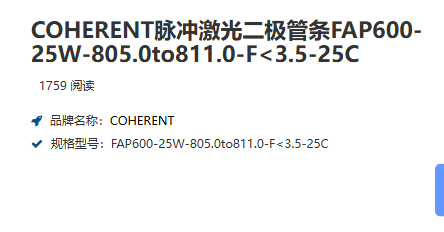 COHERENT脉冲激光二极管条FAP600-25W-805.0to811.0-F3.5-25C 电话:0755-84670052 0755-83317701 手机/微信:13682357549 13246646513 QQ:672776553 564600083 1903656788 Email:672776553@qq.com 564600083@qq.com