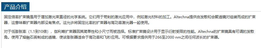 ALTECHNA固定倍率扩束镜FBE-1.2X-0355