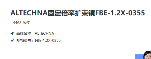ALTECHNA固定倍率扩束镜FBE-1.2X-0355 电话:0755-84670052 0755-83317701 手机/微信:13682357549 13246646513 QQ:672776553 564600083 1903656788 Email:672776553@qq.com 564600083@qq.com