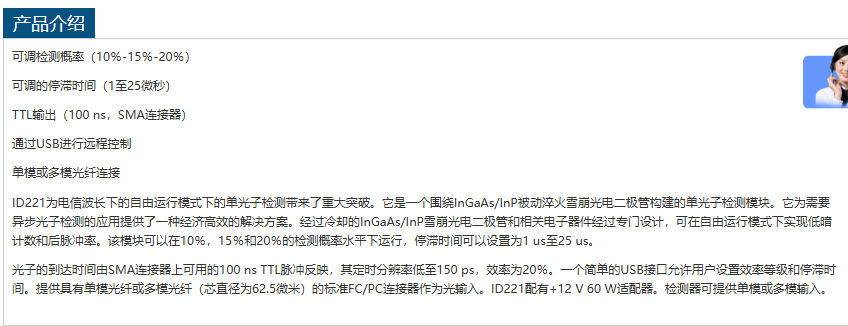 ID Quantique红外单光子探测器ID221-STD 电话:0755-84670052 0755-83317701 手机/微信:13682357549 13246646513 QQ:672776553 564600083 1903656788 Email:672776553@qq.com 564600083@qq.com