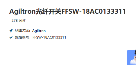 Agiltron光纤开关FFSW-18AC0133311 电话:0755-84670052 0755-83317701 手机/微信:13682357549 13246646513 QQ:672776553 564600083 1903656788 Email:672776553@qq.com 564600083@qq.com
