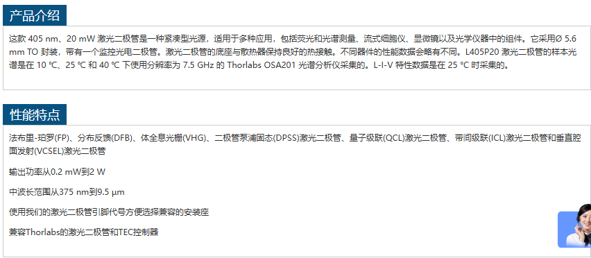 THORLABS激光二极管L405P20