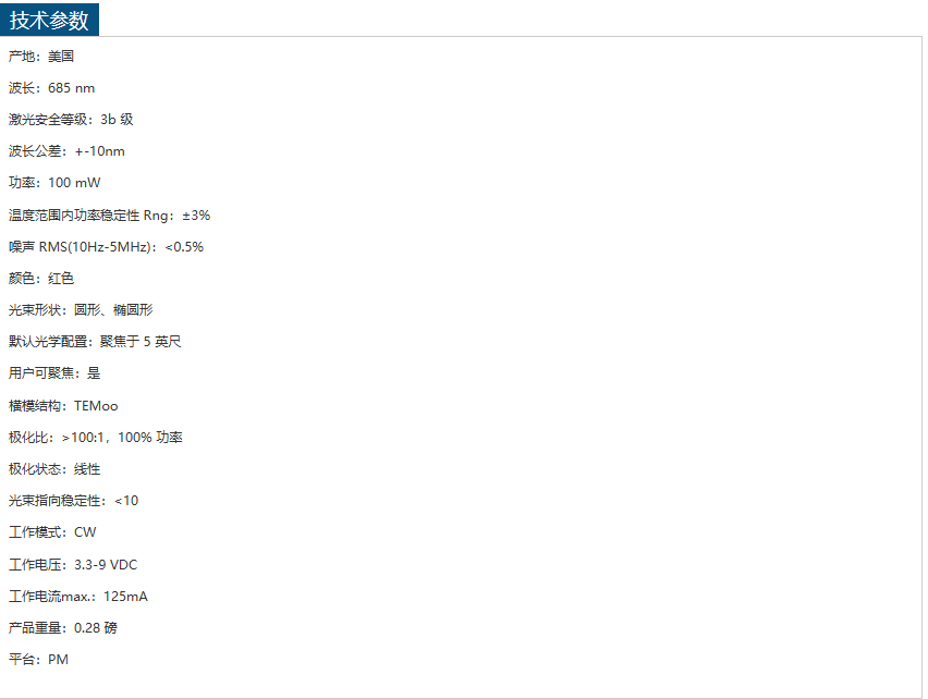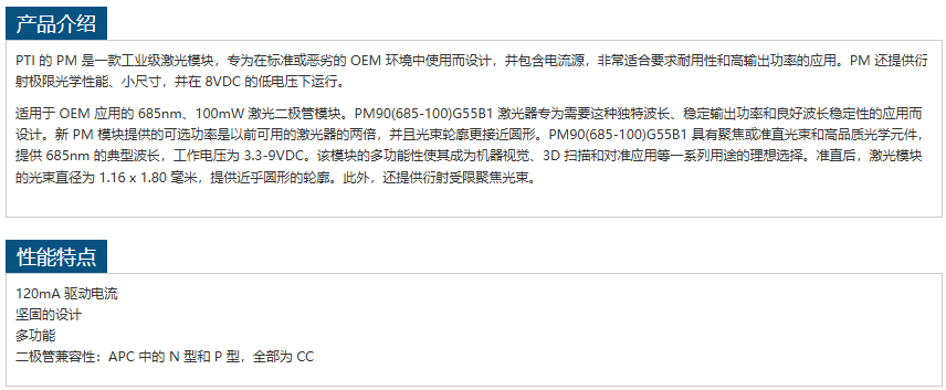 POWER TECHNOLOGY工业级激光模块PM90(685-100)G55B1