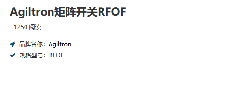 Agiltron矩阵开关RFOF 电话:0755-84670052 0755-83317701 手机/微信:13682357549 13246646513 QQ:672776553 564600083 1903656788 Email:672776553@qq.com 564600083@qq.com