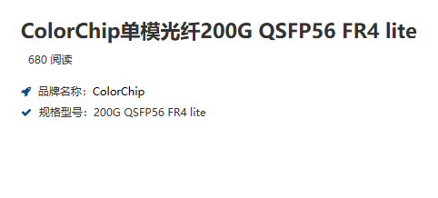 ColorChip单模光纤200G QSFP56 FR4 lite 电话:0755-84670052 0755-83317701 手机/微信:13682357549 13246646513 QQ:672776553 564600083 1903656788 Email:672776553@qq.com 564600083@qq.com