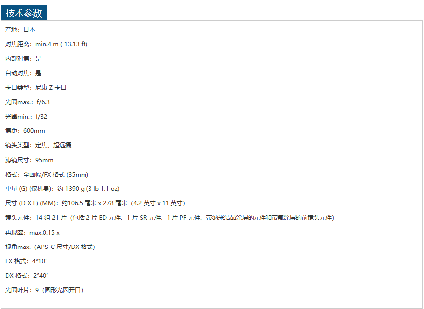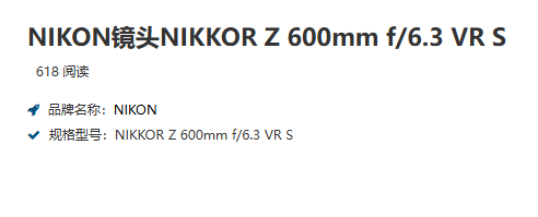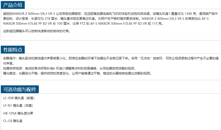 NIKON镜头NIKKOR Z 600mm f 6.3 VR S