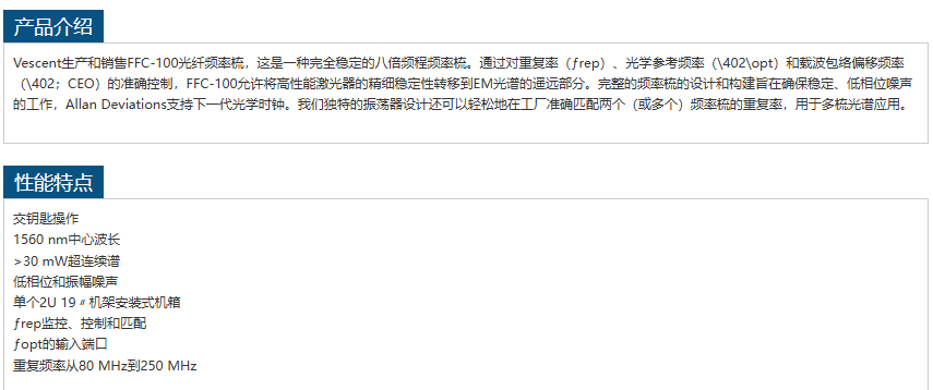 Vescent光纤频率梳FFC-100 电话:0755-84670052 0755-83317701 手机/微信:13682357549 13246646513 QQ:672776553 564600083 1903656788 Email:672776553@qq.com 564600083@qq.com