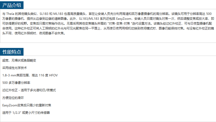 THEIA变焦镜头SL183A 电话:0755-84670052 0755-83317701 手机/微信:13682357549 13246646513 QQ:672776553 564600083 1903656788 Email:672776553@qq.com 564600083@qq.com