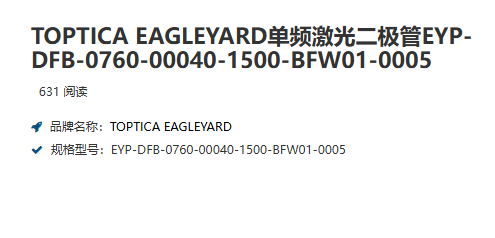 TOPTICA EAGLEYARD单频激光二极管EYP-DFB-0760-00040-1500-BFW01-0005 电话:0755-84670052 0755-83317701 手机/微信:13682357549 13246646513 QQ:672776553 564600083 1903656788 Email:672776553@qq.com 564600083@qq.com