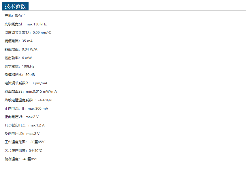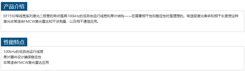 Eblana Photonics激光二极管EP1550 电话:0755-84670052 0755-83317701 手机/微信:13682357549 13246646513 QQ:672776553 564600083 1903656788 Email:672776553@qq.com 564600083@qq.com