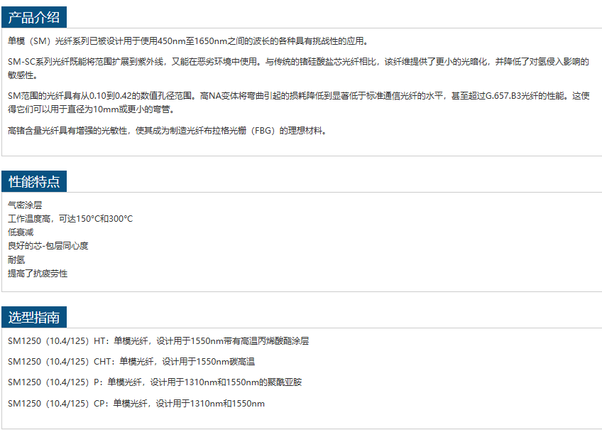 Fibercore单模光纤SM1250(10.4 125)HT 电话:0755-84670052 0755-83317701 手机/微信:13682357549 13246646513 QQ:672776553 564600083 1903656788 Email:672776553@qq.com 564600083@qq.com