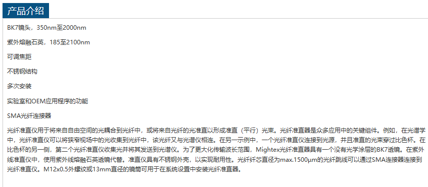 MIGHTEX多模光纤准直器FOC-010-006-V