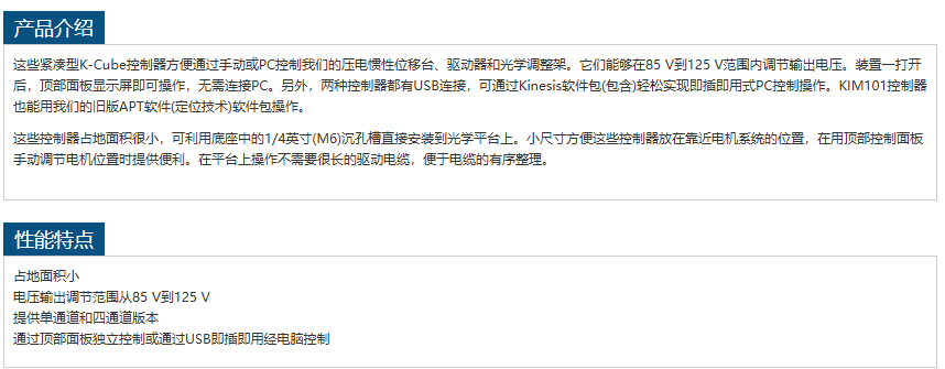THORLABS控制器KIM001 电话:0755-84670052 0755-83317701 手机/微信:13682357549 13246646513 QQ:672776553 564600083 1903656788 Email:672776553@qq.com 564600083@qq.com