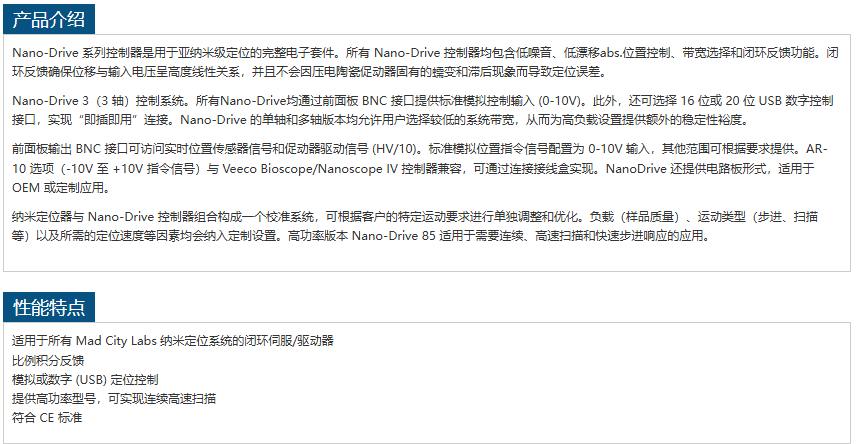 Mad City Labs单轴定位控制器Nano-Drive 1 电话:0755-84670052 0755-83317701 手机/微信:13682357549 13246646513 QQ:672776553 564600083 1903656788 Email:672776553@qq.com 564600083@qq.com