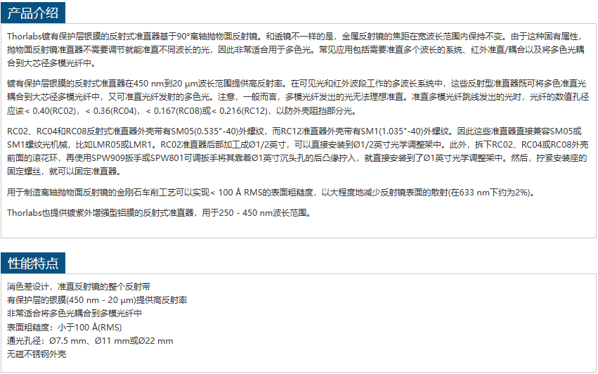 THORLABS反射准直器RC12FC-P01 电话:0755-84670052 0755-83317701 手机/微信:13682357549 13246646513 QQ:672776553 564600083 1903656788 Email:672776553@qq.com 564600083@qq.com