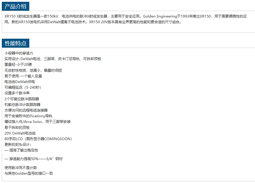 GOLDENX射线发生器XR150-20V