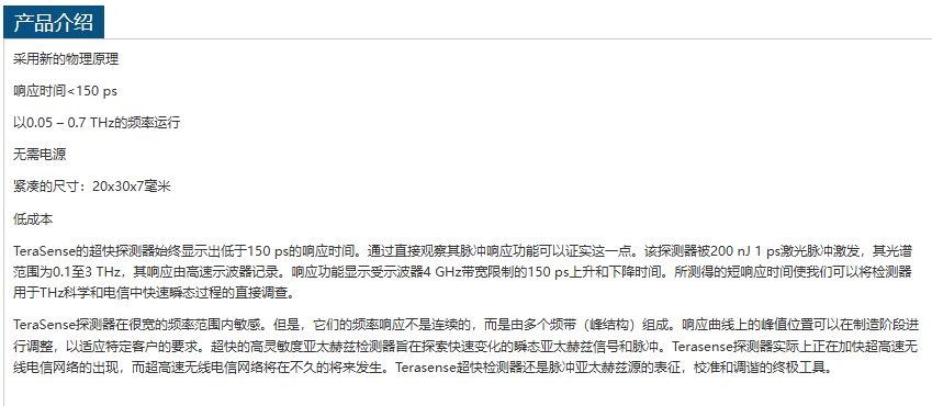 Terasense超快速太赫兹探测器Ultrafast 电话:0755-84670052 0755-83317701 手机/微信:13682357549 13246646513 QQ:672776553 564600083 1903656788 Email:672776553@qq.com 564600083@qq.com