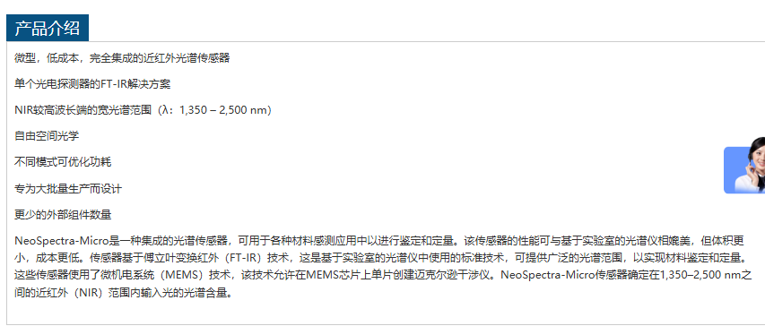 Neospectra集成光谱传感器SWS62231 电话:0755-84670052 0755-83317701 手机/微信:13682357549 13246646513 QQ:672776553 564600083 1903656788 Email:672776553@qq.com 564600083@qq.com