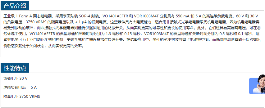 VISHAY固态继电器VOR1003M4 电话:0755-84670052 0755-83317701 手机/微信:13682357549 13246646513 QQ:672776553 564600083 1903656788 Email:672776553@qq.com 564600083@qq.com