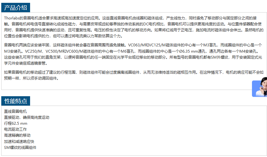 THORLABS音圈电机VC500 M 电话:0755-84670052 0755-83317701 手机/微信:13682357549 13246646513 QQ:672776553 564600083 1903656788 Email:672776553@qq.com 564600083@qq.com