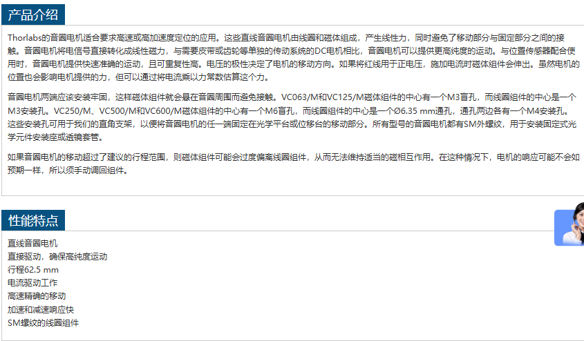 THORLABS音圈电机VC125 M 电话:0755-84670052 0755-83317701 手机/微信:13682357549 13246646513 QQ:672776553 564600083 1903656788 Email:672776553@qq.com 564600083@qq.com