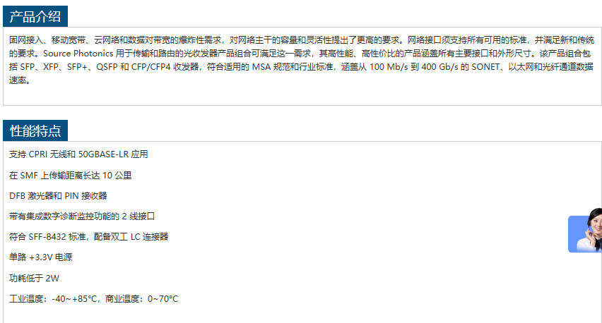Source Photonics光收发器SP-50E-LR-xDFA 电话:0755-84670052 0755-83317701 手机/微信:13682357549 13246646513 QQ:672776553 564600083 1903656788 Email:672776553@qq.com 564600083@qq.com