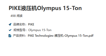 PIKE液压机Olympus 15-Ton 电话:0755-84670052 0755-83317701 手机/微信:13682357549 13246646513 QQ:672776553 564600083 1903656788 Email:672776553@qq.com 564600083@qq.com
