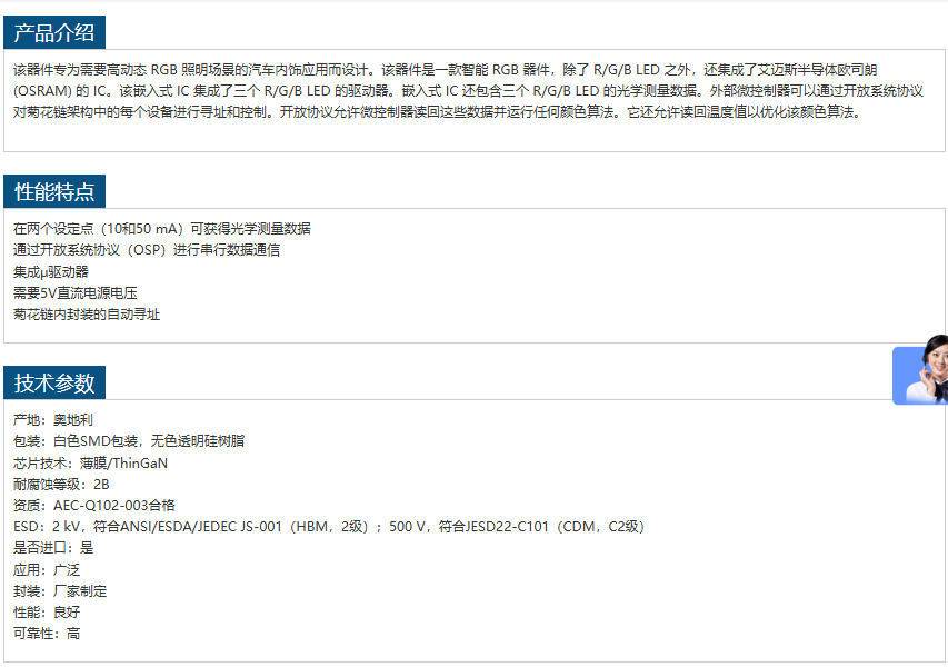 ams-OSRAM智能 RGB 器件KRTBI D2LM31.31 电话:0755-84670052 0755-83317701 手机/微信:13682357549 13246646513 QQ:672776553 564600083 1903656788 Email:672776553@qq.com 564600083@qq.com