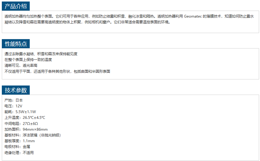 GEOMATEC透明加热器GMT-100-12