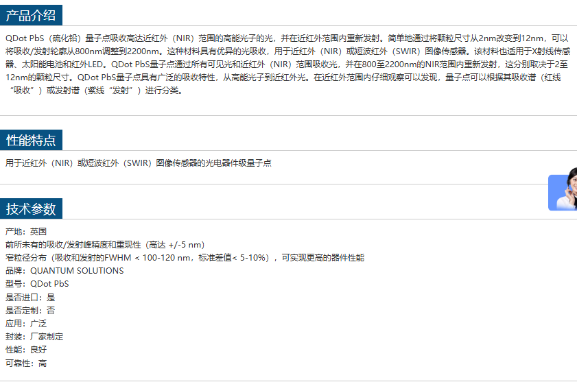 QUANTUM SOLUTIONS量子点QDot PbS 电话:0755-84670052 0755-83317701 手机/微信:13682357549 13246646513 QQ:672776553 564600083 1903656788 Email:672776553@qq.com 564600083@qq.com